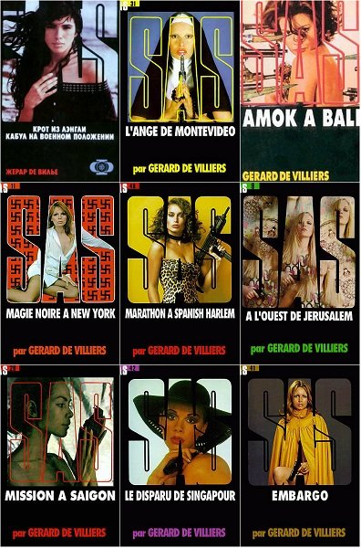 Романы Жерара де Вилье из серии "SAS" (54 книги) написаны легко и динамично: ничего лишнего, отвлекающего. Они держат читателя в постоянном напряжении, притягивают его и в то же время позволяют отдохнуть, расслабиться, отвлечься от проблем. Красивые эротические фантазии, художественное содержание политических событий, вошедших в историю и связанных с такими политическими фигурами, как Че Гевара, Раджив Ганди, Михаил Горбачев, Саддам Хусейн, Муаммар Каддафи, в которых принимает участие герой книги - шпион-профессионал высшей пробы, по словам писателя, преследуют единственную цель - развлечь читателя. SAS - это сокращенное обозначение титула - "Son Altesse Serenissime" ("его высокородное сиятельство князь"), а совсем не аббревиатура британской разведывательно-диверсионной воздушно-десантной службы, как вы могли подумать. Главный герой серии - австрийский подданный князь Малко Линге, выполняющий ответственные задания ЦРУ по всему земному шарику - не более чем франко-австрийско-американская копия Джеймса Бонда.