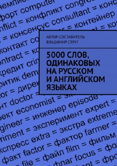 Книга содержит 5000 слов одинаковых на русском и английском языках. Она создана для упрощения жизни и для экономии времени при пополнении своего словарного запаса английскими словами. Вы обязательно узнаете для себя что-то новое.