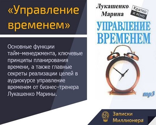 Основные функции тайм – менеджмента, ключевые принципы планирования времени, а также главные секреты реализации целей в аудиокурсе управление временем от бизнес – тренера Лукашенко Марины